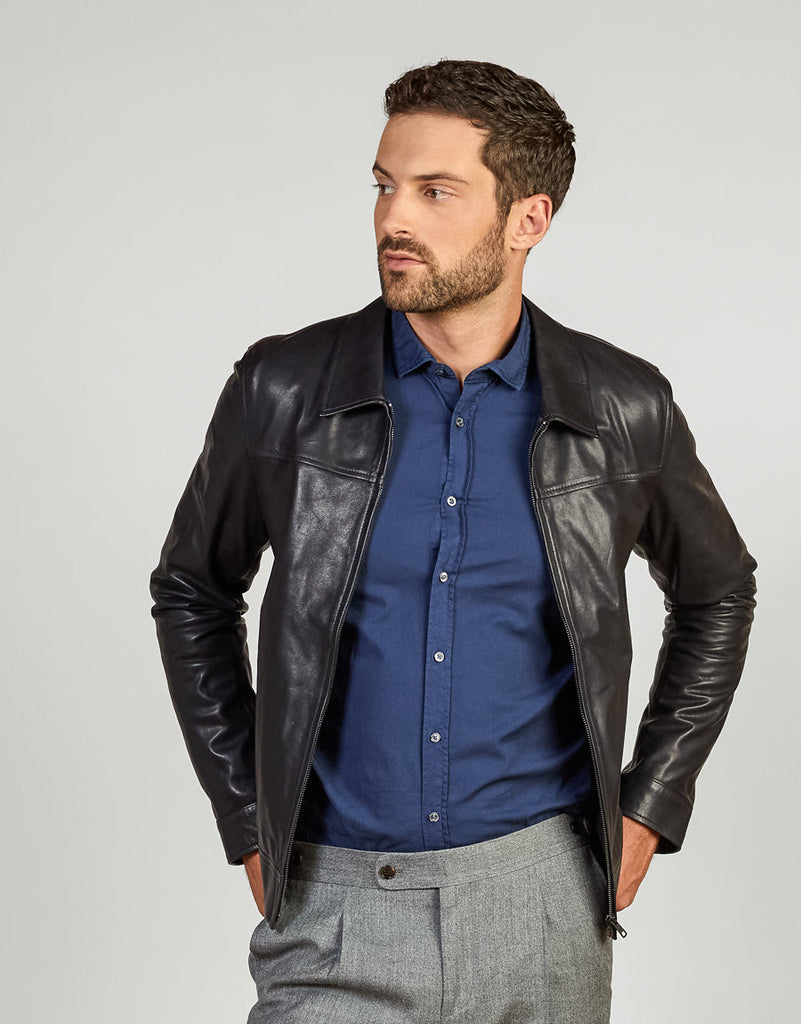 Our garment dyed Alfred shirt features a hidden button-down collar. It has a "lived in" look and feel and is designed to be worn untucked, with chinos or jeans.