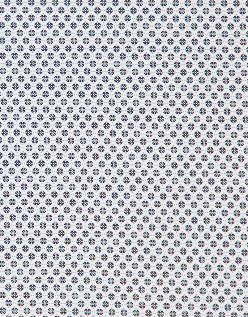 Designed for those who appreciate clean lines and simplicity, the Banks White Micro-design Shirt is a flexible choice for any day of the week. Featuring a subtle light blue diamond pattern, it adds a touch of texture that lifts it above the ordinary. The slim fit contours smoothly through the chest and sleeves, offering a contemporary, tailored look. Made from 100% cotton, it promises comfort and breathability all day long. With smart buttoned cuffs, this shirt effortlessly moves from work to social settings, embodying understated confidence.