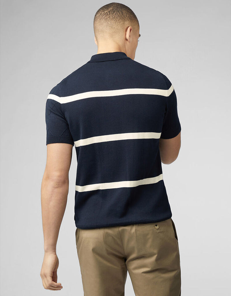 Ben Sherman Argyle Stripe Dark Navy Short Sleeve Polo