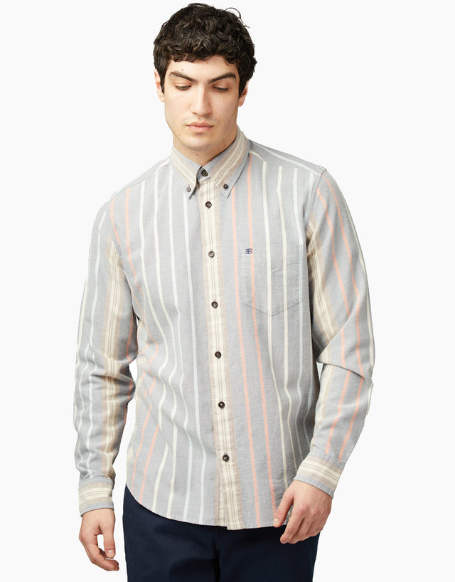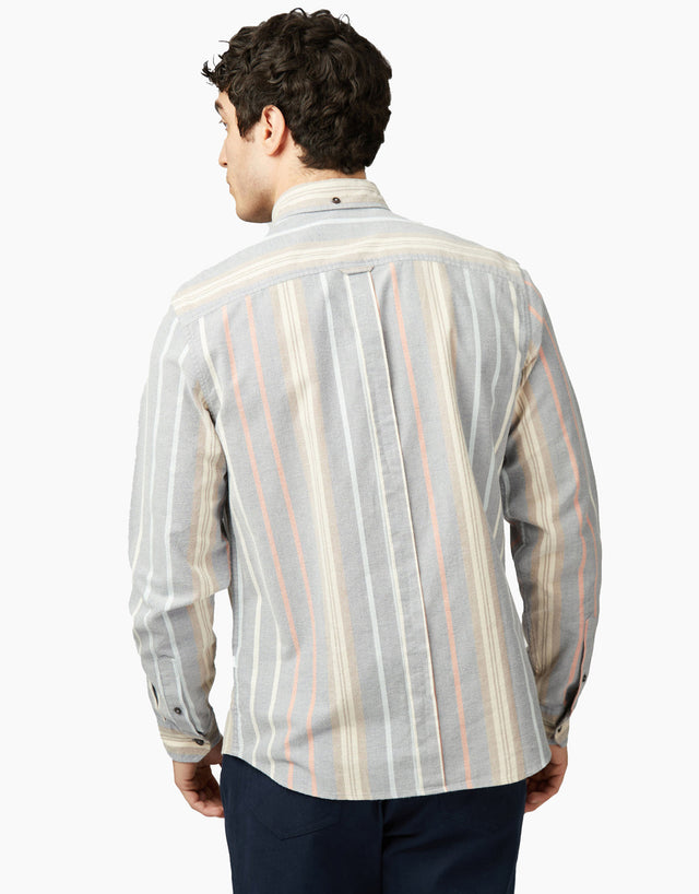A fresh take on an Oxford classic, the Ben Sherman Asymmetric Striped Oxford Indigo Shirt is crafted from 100% Cotton Ceramic Oxford for superior comfort and durability. Its variegated stripe pattern adds a distinctive touch, while the three-finger button-down collar and embroidered ‘B’ chest pocket bring signature Ben Sherman refinement. With a classic fit and curved hem, this versatile shirt transitions effortlessly from work to weekend.