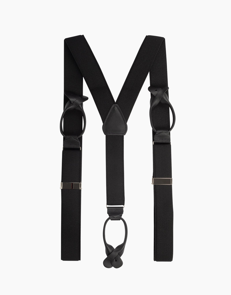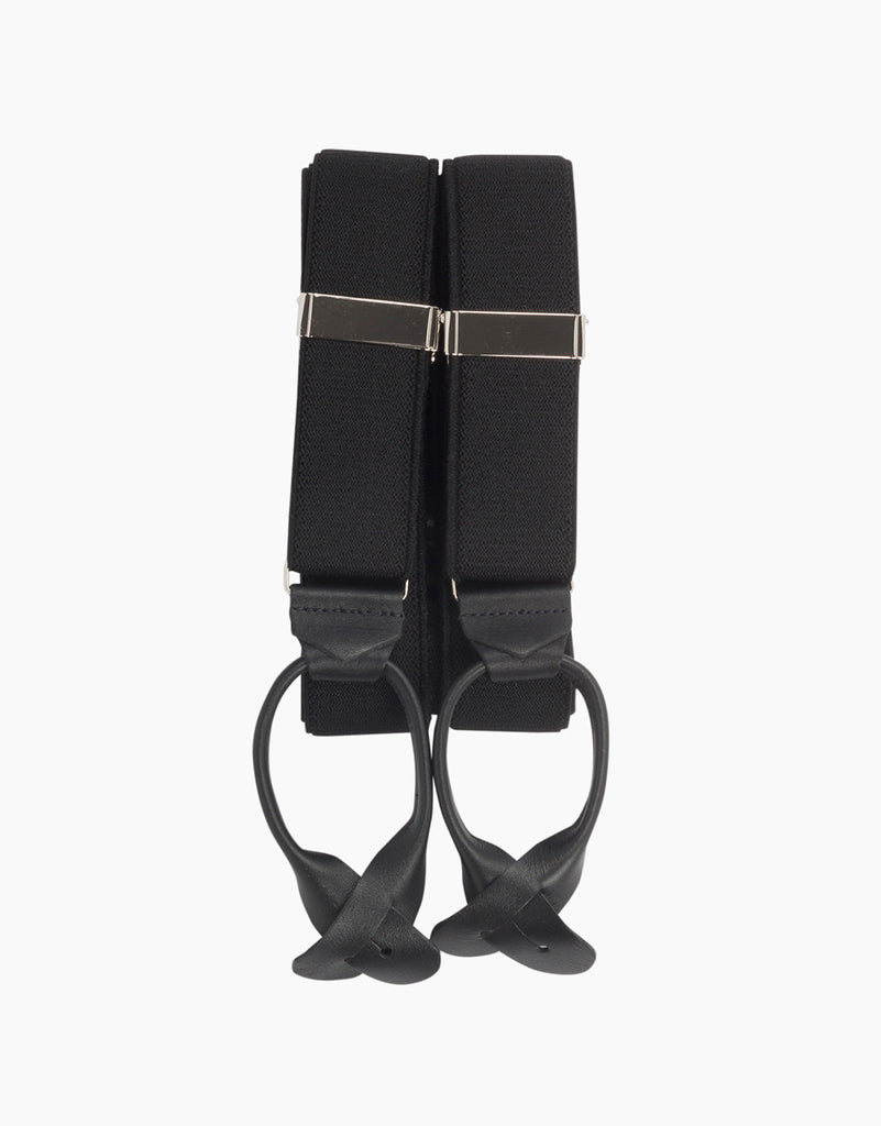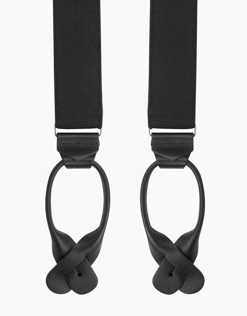 Y Back Black Suspender Leather End Braces