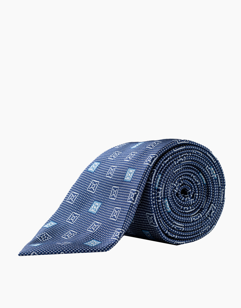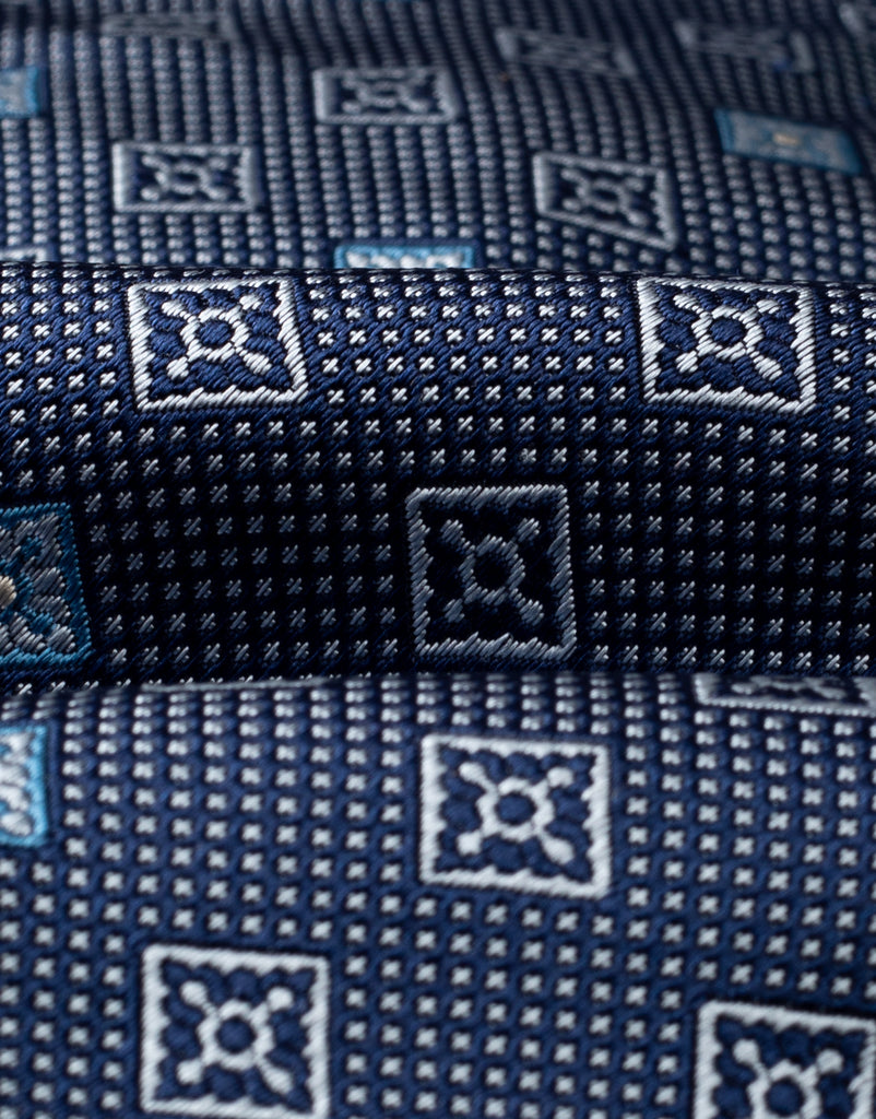 Crafted from pure Italian silk and meticulously woven in Italy, the Blue Diamond Geometric Tie exudes timeless elegance. Its intricate geometric pattern in a striking blue hue offers a fresh yet classic accessory for the discerning gentleman. This tie embodies the artistry and heritage of Italian fabric craftsmanship, making it an essential piece in any refined wardrobe.