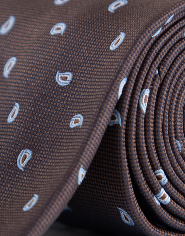Not all ties are created equal. This one—cut in a classic 8cm width and woven from 100% silk—proves the point. The micro paisley pattern in brown and blue adds just the right amount of character to navy tailoring or a crisp white shirt. Confident. Understated. Endlessly wearable.