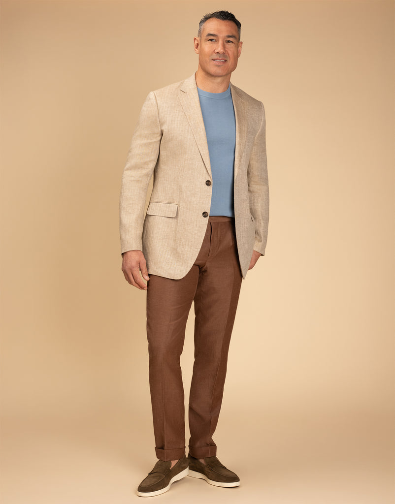 Our most popular fit. A contemporary cut that is slightly wider across the Jacket chest and abdomen and wider in the Trouser leg than the Narrow fit. It creates a flattering silhouette on men of all shapes and sizes.