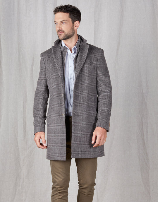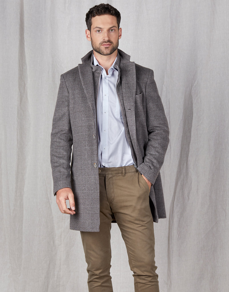 Crafted of a remarkable check-patterned fabric, the Compton overcoat is a standout in our winter selection. This garment can be worn with or without its detachable vest piece, either closed or zipped up. You can customise your look and adjust your level of protection against the cold with two ways to wear it - with or without the detachable vest. Enjoy the best of both worlds!