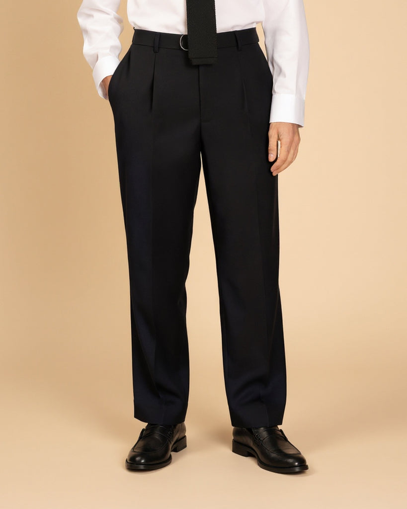 - Single pleats for ease through the hip