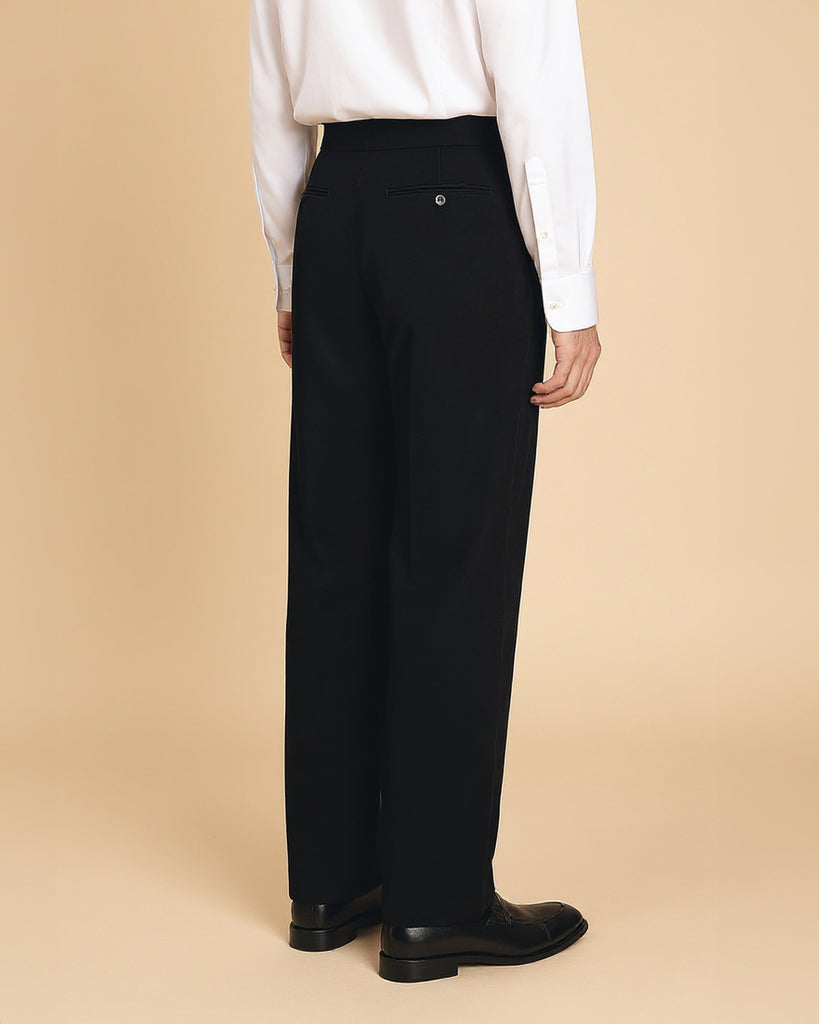 The Crete marks a decisive shift toward generous tailoring with our broadest trouser silhouette to date. Cut from 100% wool, this high-rise trouser commands attention through its relaxed wide-leg proportions, engineered to maintain fullness across the hip and thigh before settling into a refined taper below the knee. Single pleats offer ease of movement, whilst belt loops provide visual balance against the expansive cut. The plain hem ensures an uninterrupted line and natural fabric fall. Designed as a natural pairing with our Doppio and Cyprus jackets, the Crete channels the unforced elegance of vintage 80s and 90s menswear, a contemporary statement that marries comfort with timeless tailoring sensibility.