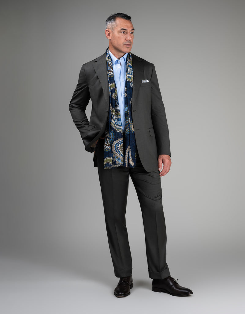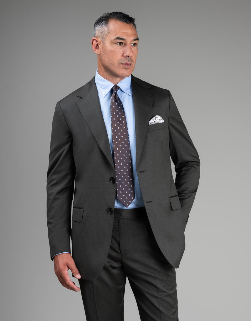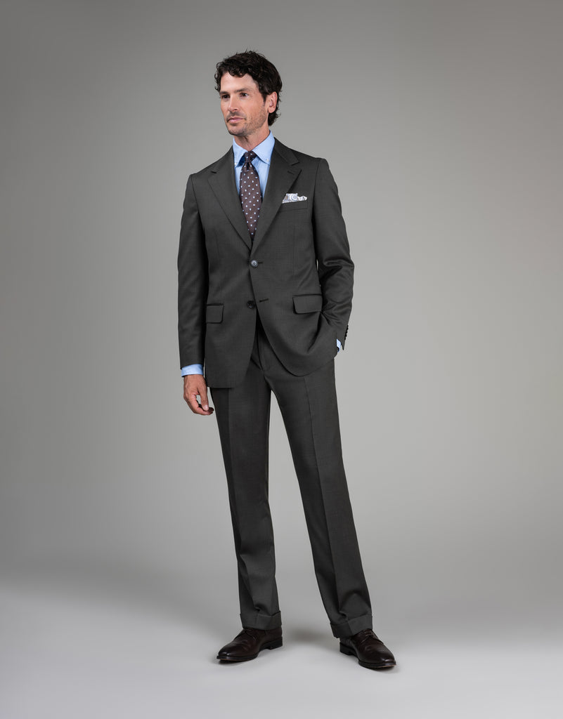 Our most popular fit. A contemporary cut that is slightly wider across the Jacket chest and abdomen and wider in the Trouser leg than the Narrow fit. It creates a flattering silhouette on men of all shapes and sizes.