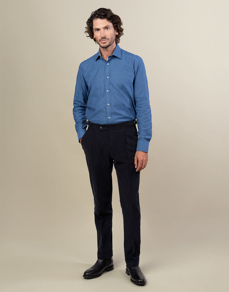 - Match with the Whetu Navy Brushed Cotton Blazer to make it a suit, or wear it by itself