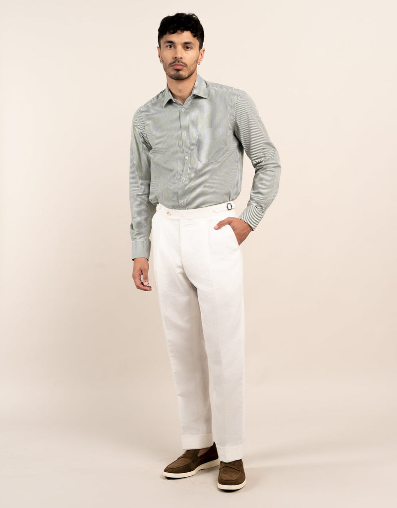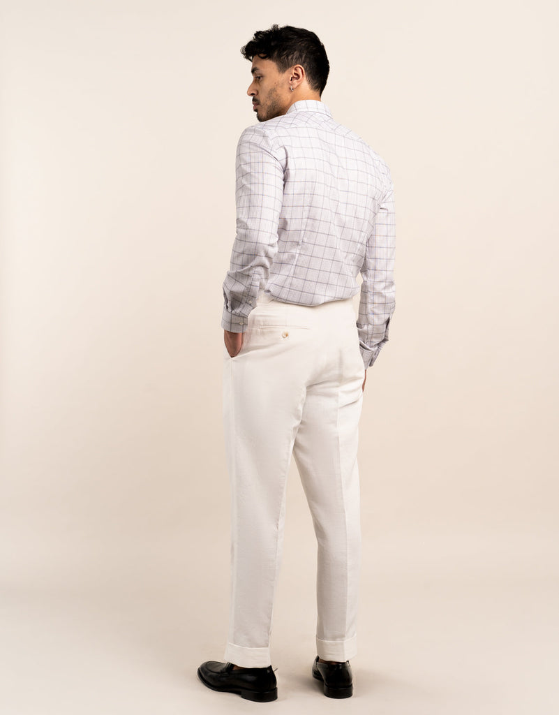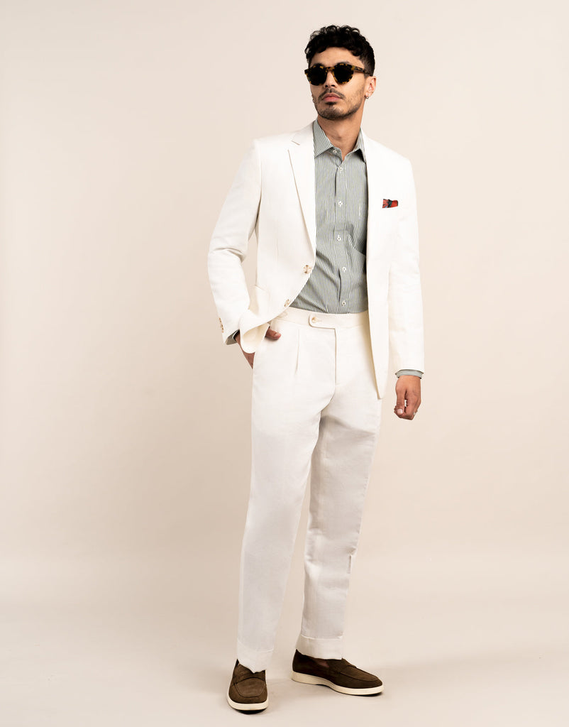 Designed with equal parts comfort and style in mind, the Evans White Linen Blend Trousers features a single pleat for added thigh room and an elastic, adjustable waistband for ultimate comfort. Made from a luxurious Italian cotton and linen blend, these trousers pair perfectly with the Malta blazer for a coordinated look, but are just as statement-worthy on their own.
