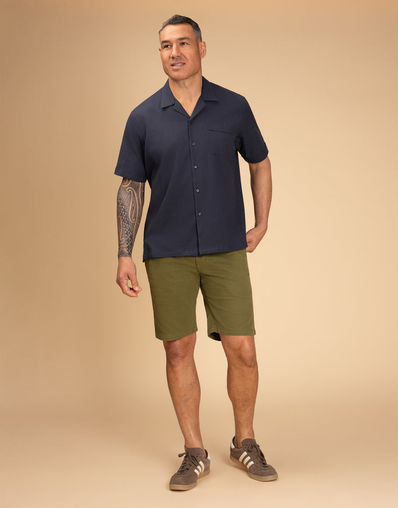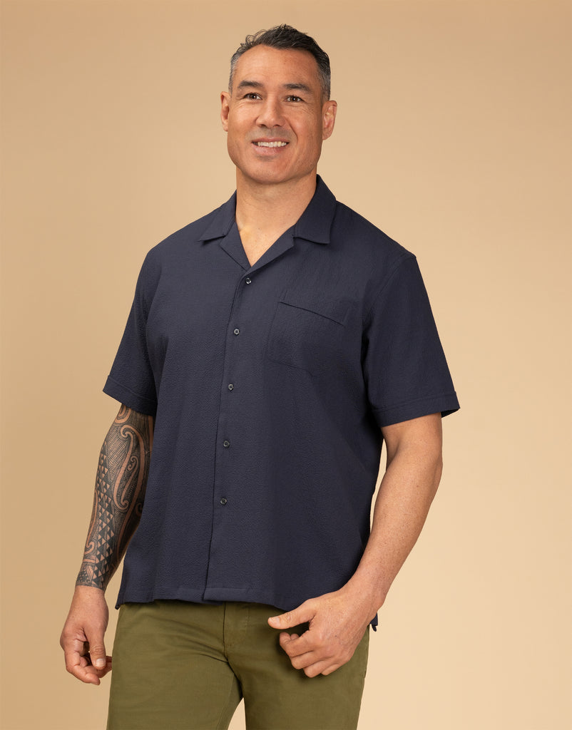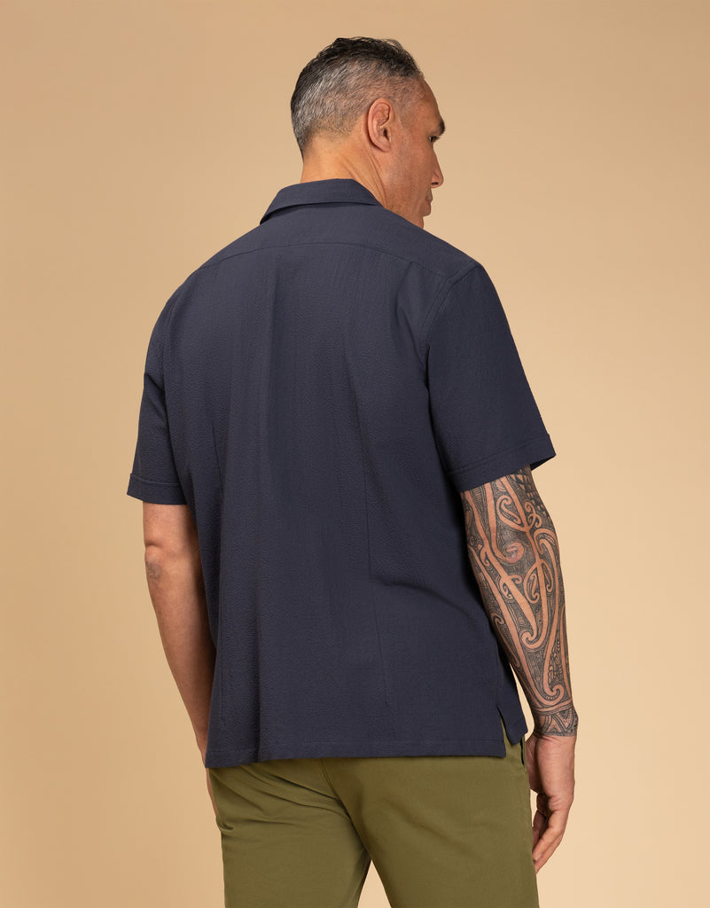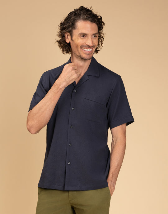 The Hahei Navy Short Sleeve Shirt is crafted from 100% cotton, offering breathable comfort and a soft touch perfect for everyday wear. Its classic navy color pairs effortlessly with any outfit, making it a versatile addition to your wardrobe. Designed for a relaxed fit, this shirt keeps you cool and comfortable all day long. Whether you're heading out for a casual day or layering up, the Hahei shirt combines style and ease with confidence.