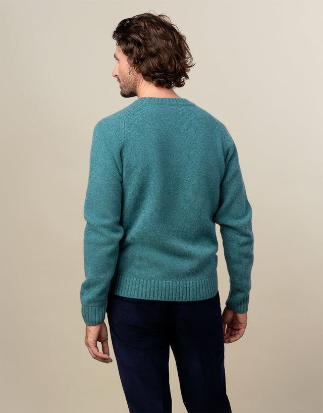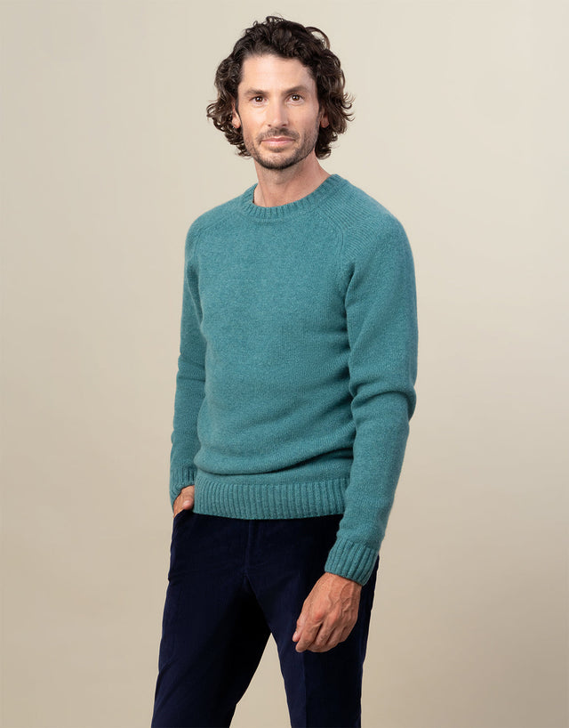 Experience ultimate comfort and durability with the pure lambswool fabric of the Shetland sweater. Its soft texture and classic design make it the perfect choice for everyday wear. Indulge in the luxurious comfort and long-lasting quality of the Seafoam Green Shetland Sweater. Its pure lambswool fabric offers a soft touch that will keep you cozy day after day, while its classic design makes it a versatile and practical addition to your wardrobe. Whether you're running errands or relaxing at home, this sweater is the ultimate choice for comfort and style.