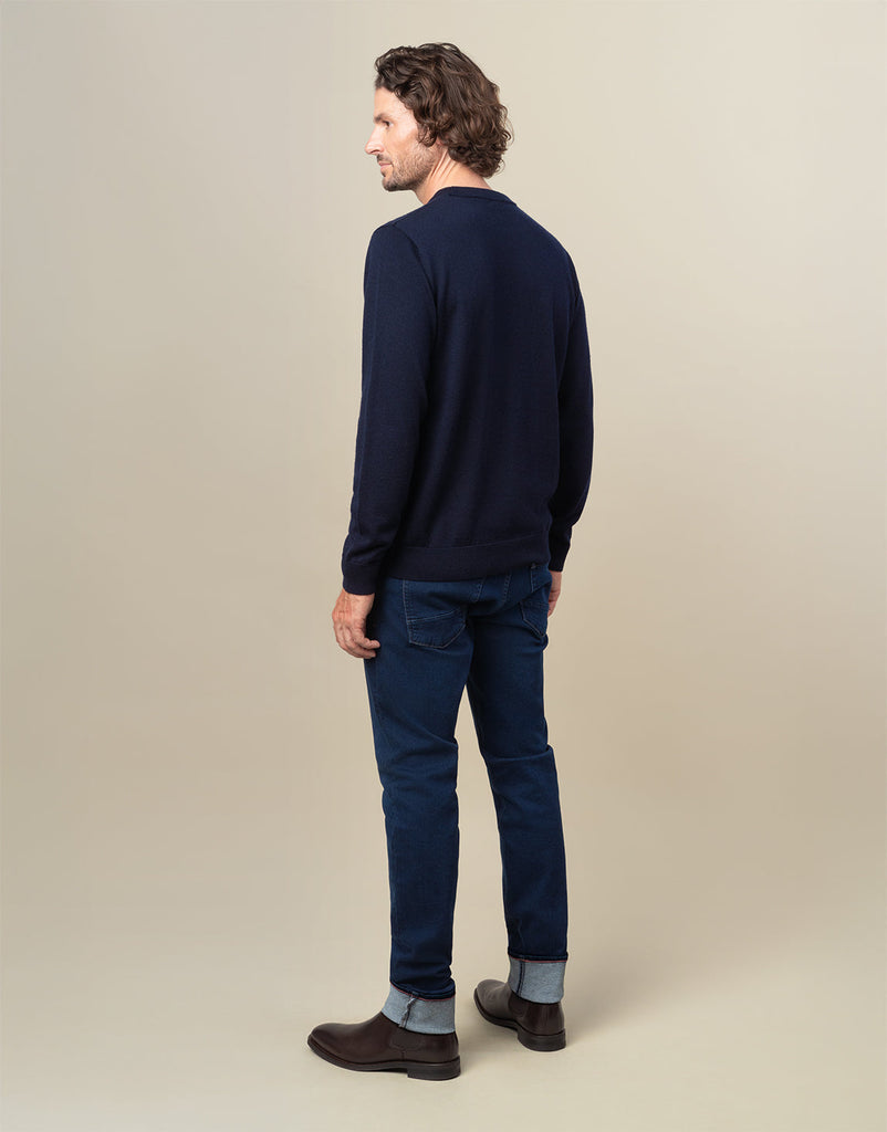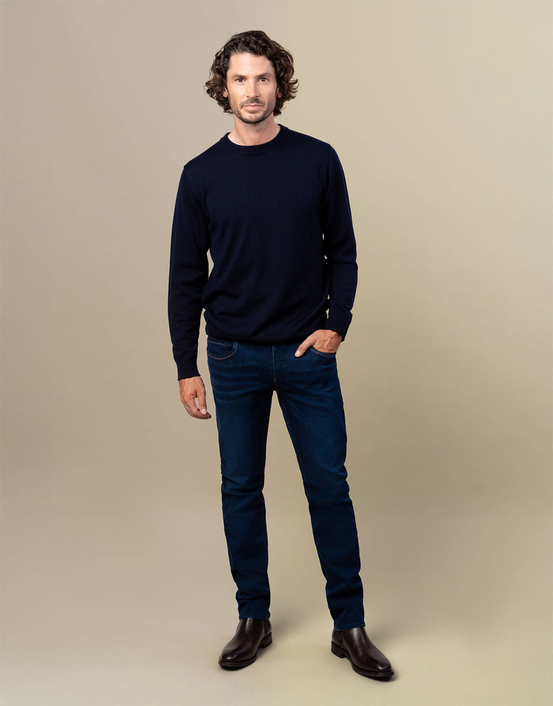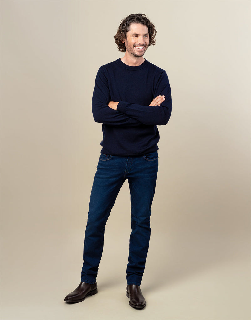 Comfort meets versatility in these dark blue jeans. Made from 12oz. stretch denim, their heavier wash and abrading creates a stylish, worn-in look and feel. Perfect for those who enjoy our chinos, these Kurt jeans are a must-have for your wardrobe.