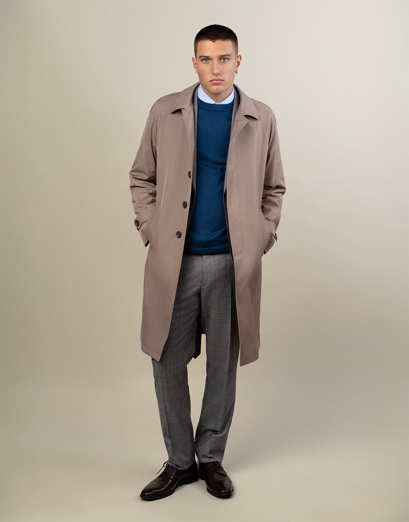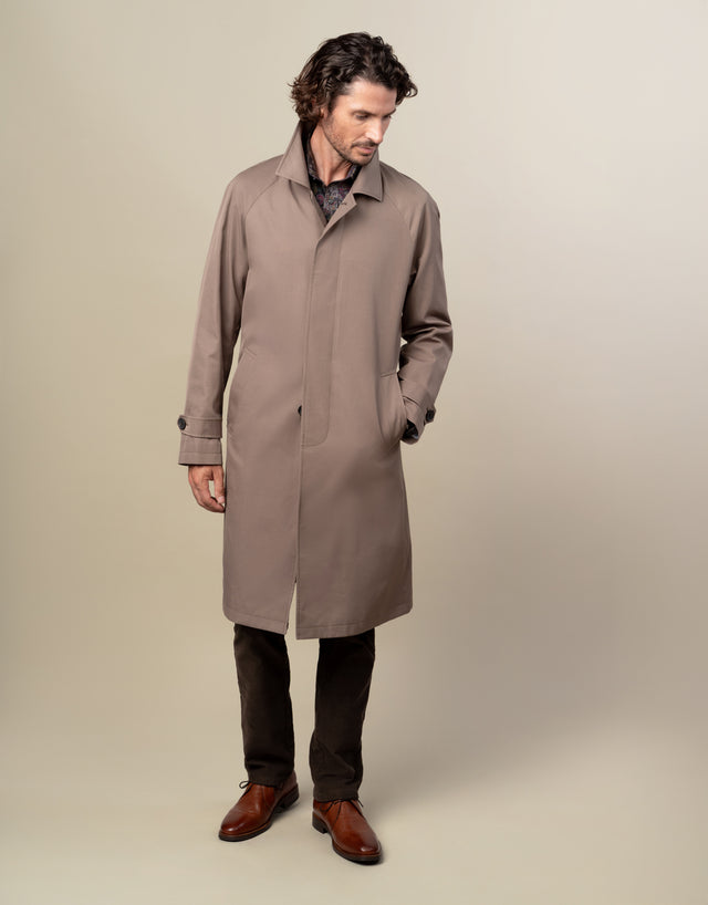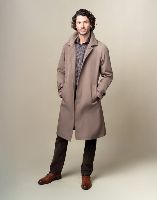 With a balance of traditional tailoring and contemporary practicality, the Loch Camel Brown Water Resistant Raglan Coat is an investment in timeless style. The Italian fabric blend offers a refined texture with a water-resistant finish, while the raglan sleeves, centre vent, and hidden button front keep the silhouette sleek. A removable belt allows for versatile styling, and with Short and Tall sizes available, this coat is made to fit perfectly.