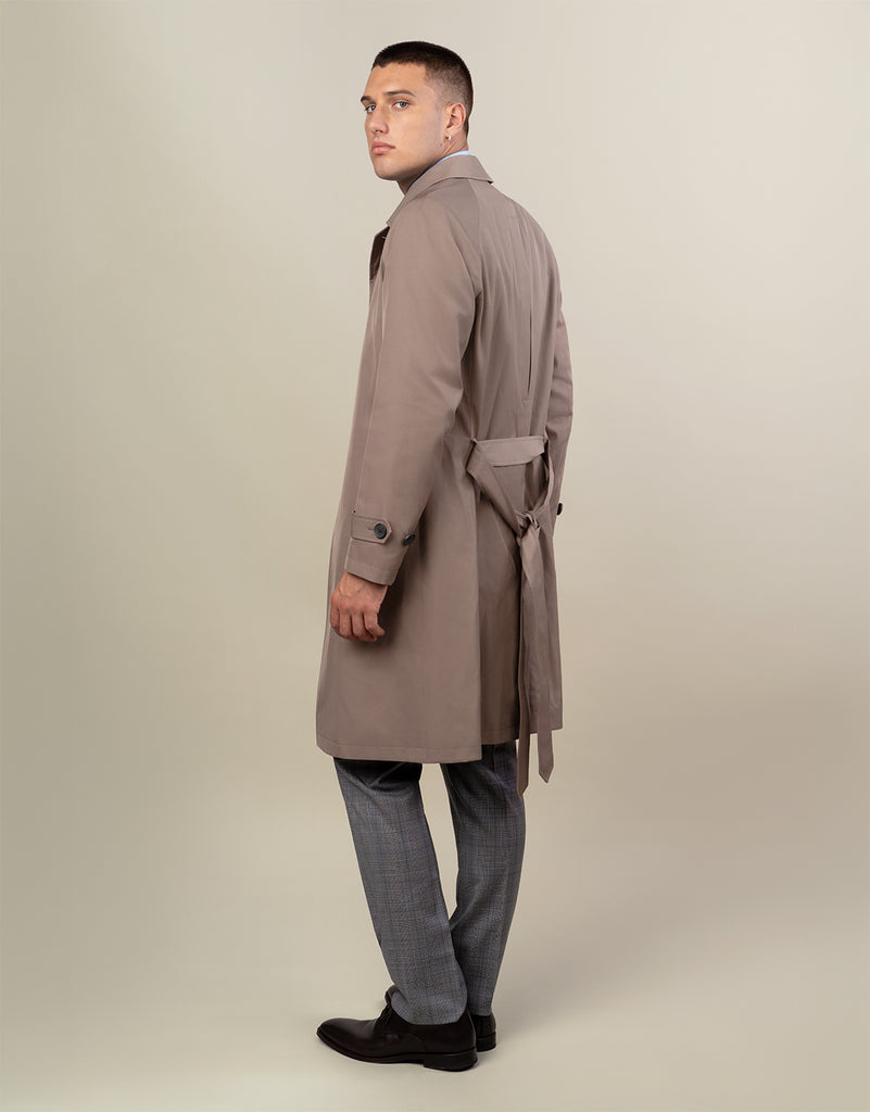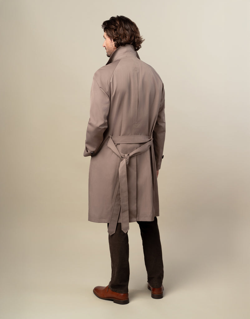 - Raglan sleeve, hidden button overcoat with centre vent and removable belt