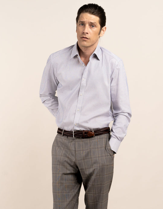 Upgrade your office wardrobe with the London Beige and Blue Microdesign Shirt. Made from premium pure cotton, this shirt offers a tailored fit for a sharp, comfortable look all day. The subtle microdesign in beige and blue adds a modern touch, while the range of sizes ensures the perfect fit for every professional. A versatile addition to any modern wardrobe.