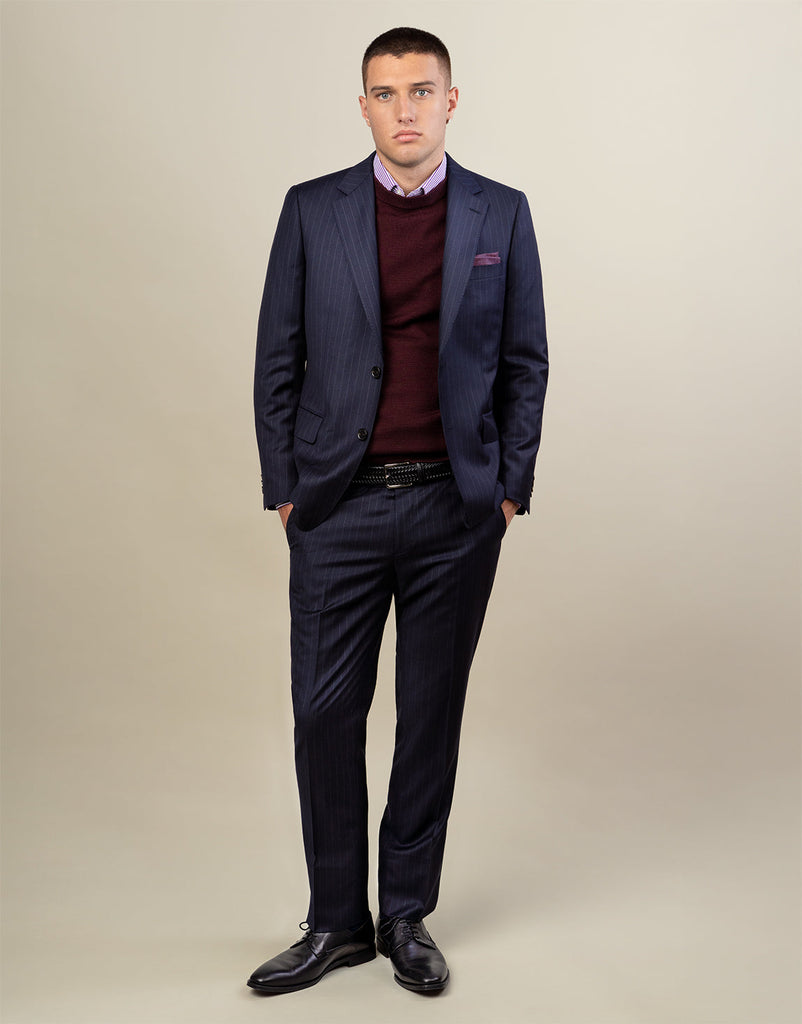 Our most popular fit. A contemporary cut that is slightly wider across the Jacket chest and abdomen and wider in the Trouser leg than the Narrow fit. It creates a flattering silhouette on men of all shapes and sizes.
