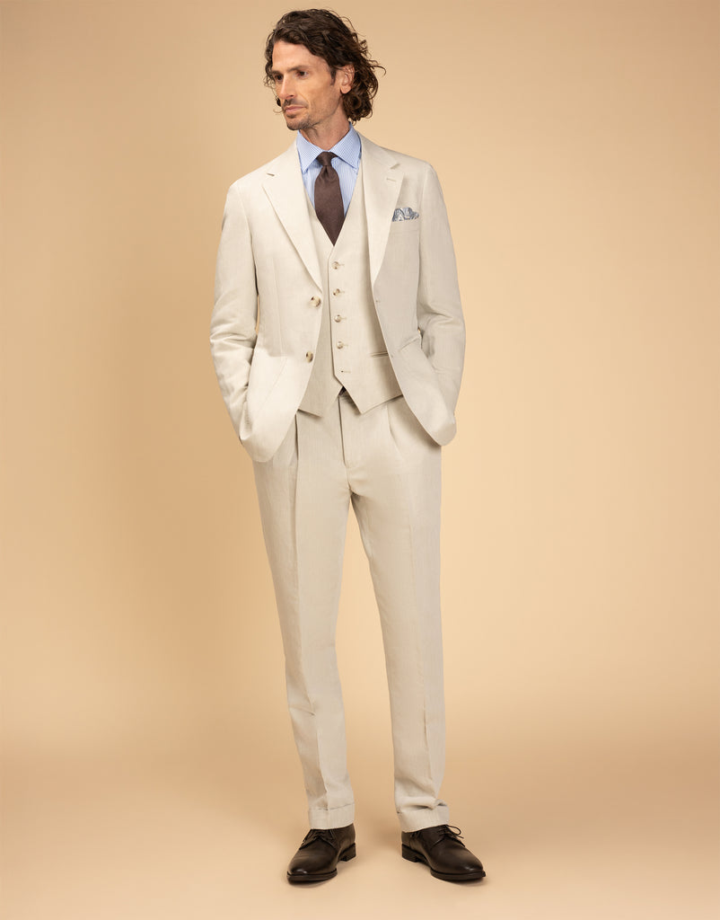 Our most popular fit. A contemporary cut that is slightly wider across the Jacket chest and abdomen and wider in the Trouser leg than the Narrow fit. It creates a flattering silhouette on men of all shapes and sizes.