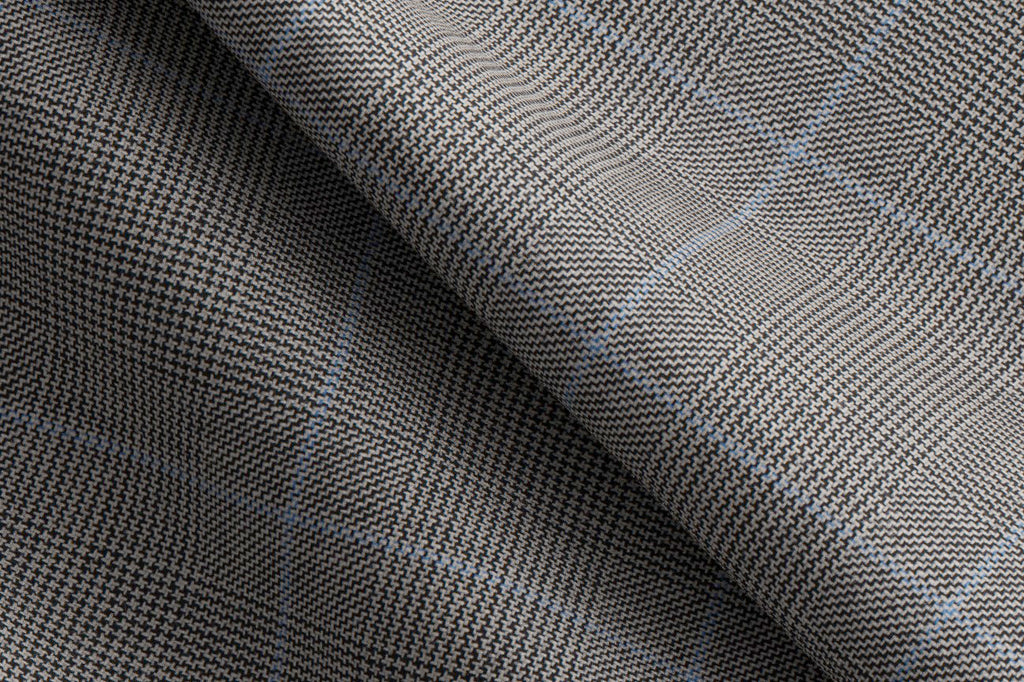 Made To Measure Black and White Prince of Wales Plaid/Blue Windowpane 2 Piece Suit