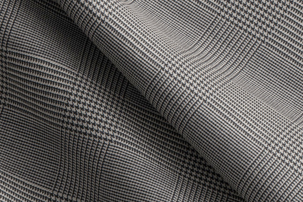 This black/white glen check made to measure suit, is tailored using a 100% wool luxury suiting from the Holland & Sherry Intercity range. Specifically woven to give the fabric body and fullness, which provides both durability and good drape.