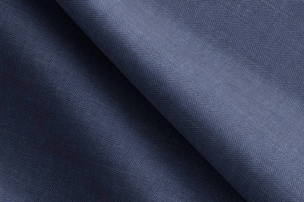 Made To Measure Dark Blue Linen Herringbone 2 Piece Suit