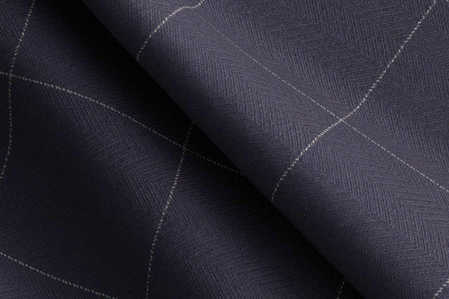 This navy/grey herringbone windowpane made to measure trouser, is tailored using a 100% wool luxury suiting from the Holland & Sherry Intercity range. Specifically woven to give the fabric body and fullness, which provides both durability and good drape.