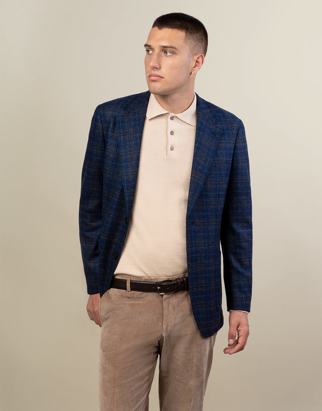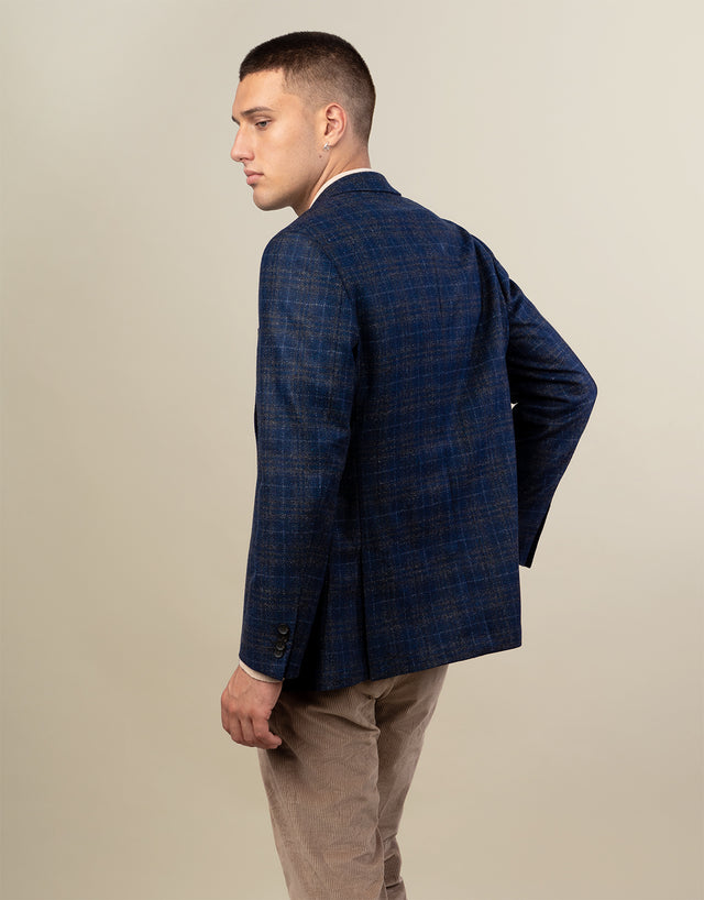 Malta Navy & Brown Check Blazer