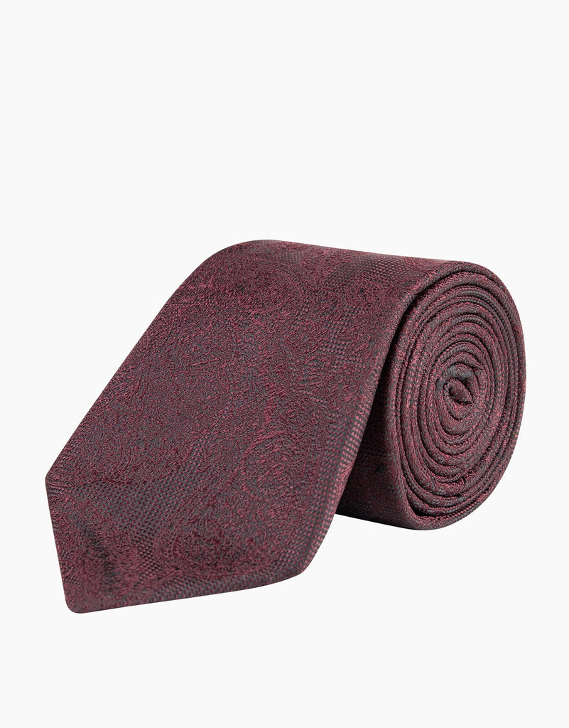 This maroon large paisley jacquard silk tie brings a splash of classic Italian craftsmanship to your outfit. Made from pure silk and crafted in Italy, its 8cm width offers a modern yet timeless look. Perfect for adding a confident, stylish touch to any suit or shirt.