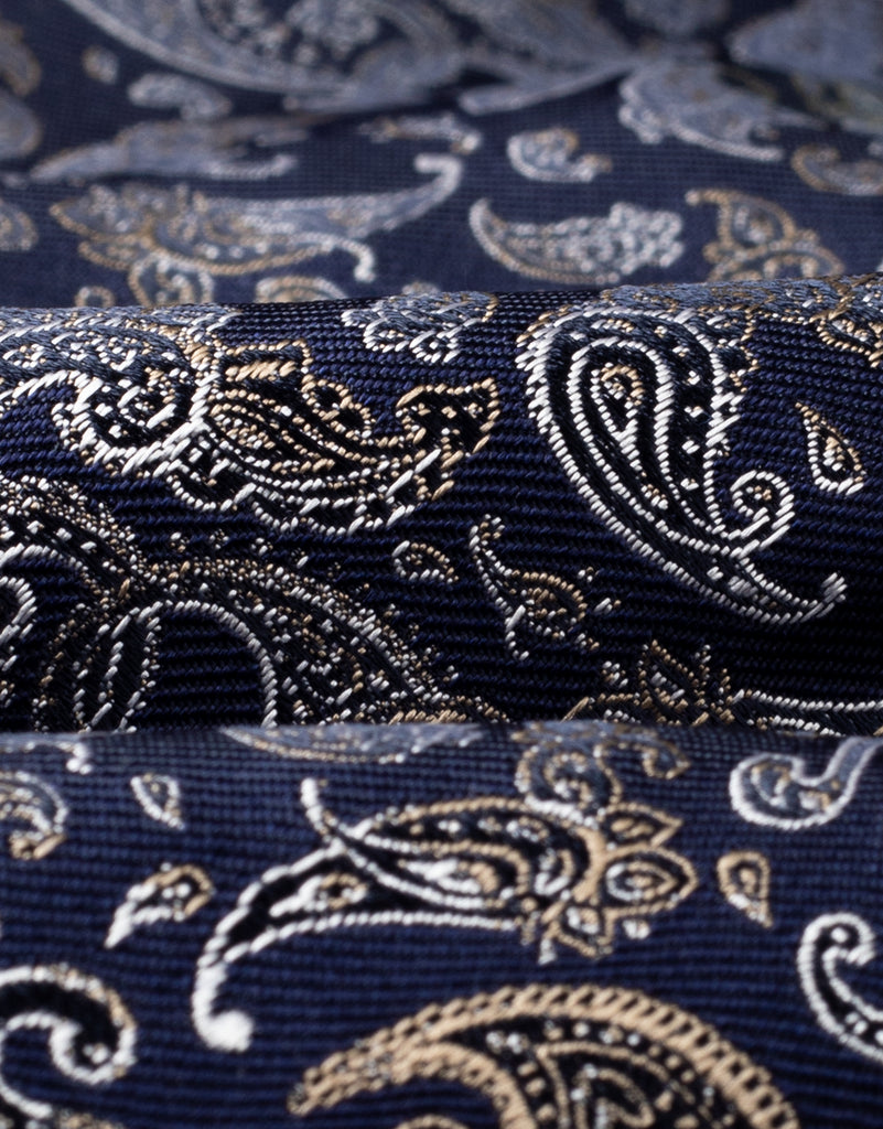 Navy & Gold Paisley Italian Silk Tie