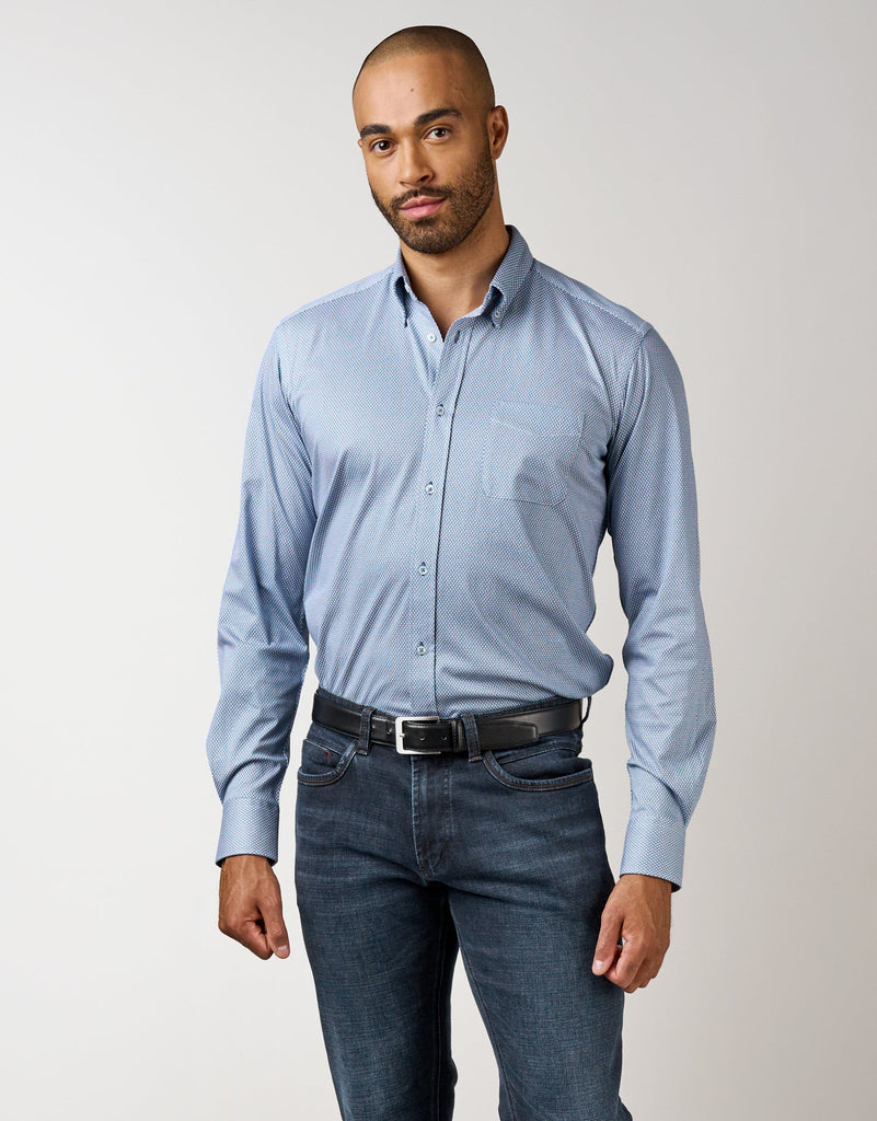 Made from 100% pure cotton, the Ohope shirt is one-of-a-kind due to its knitted material that provides a luxuriously soft feel and allows for unrestricted movement. With a button-down collar and front pocket, it's the ideal smart-casual option that effortlessly goes with jeans, chinos, and trousers. The fit guarantees comfort all day long.