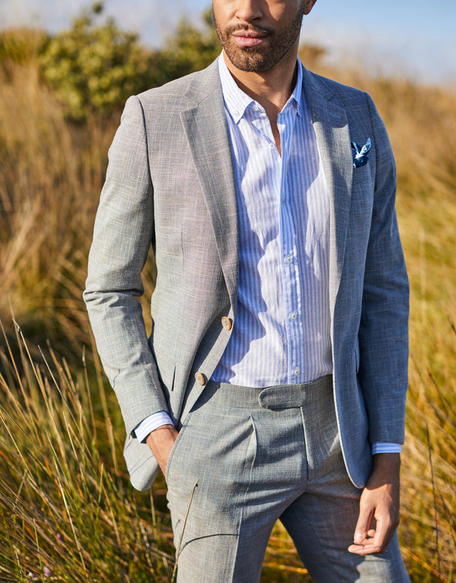 Our most popular fit. A contemporary cut that is slightly wider across the Jacket chest and abdomen and wider in the Trouser leg than the Narrow fit. It creates a flattering silhouette on men of all shapes and sizes.
