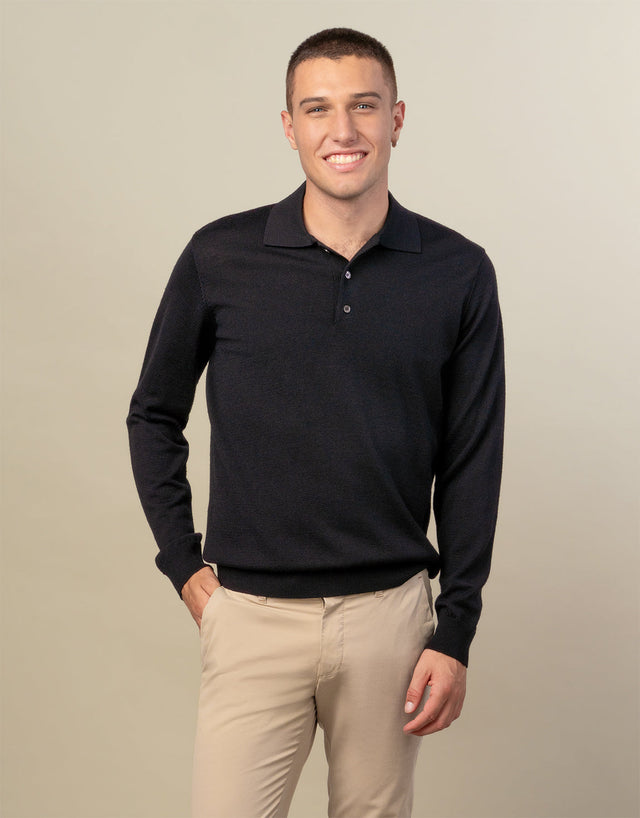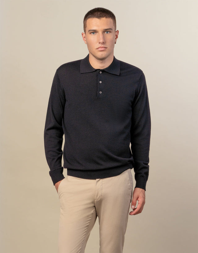 Constructed with the finest merino wool and utilising two-ply yarns, this versatile button down jersey guarantees superior shape retention and minimal pilling. Whether worn alone or layered under a blazer, it provides both warmth and comfort.