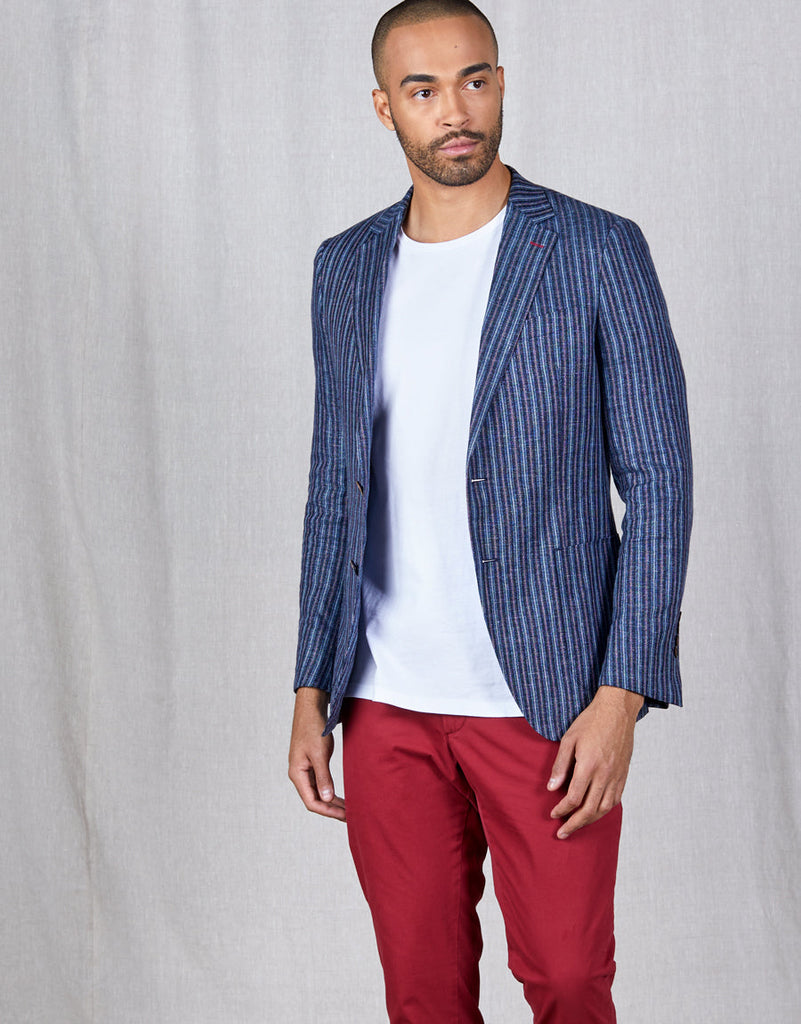 Pearse Blue, Navy & Red Stripe Blazer