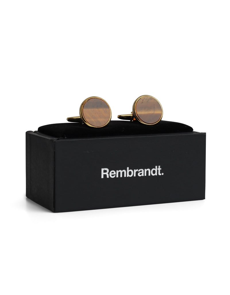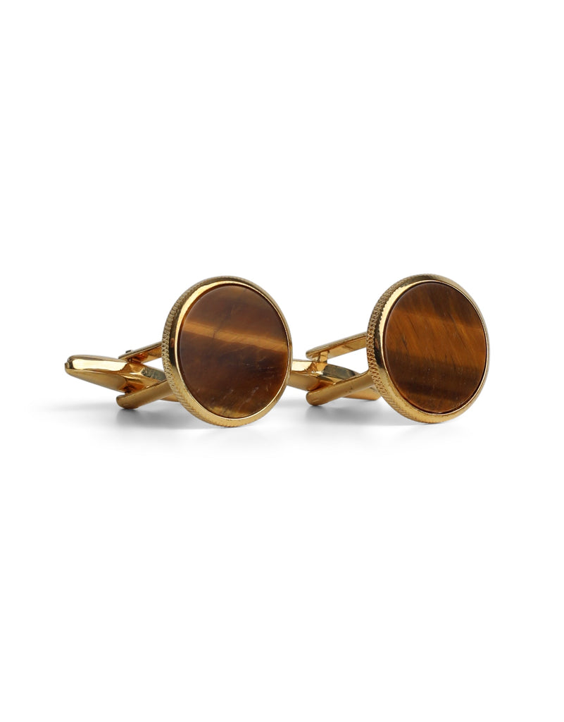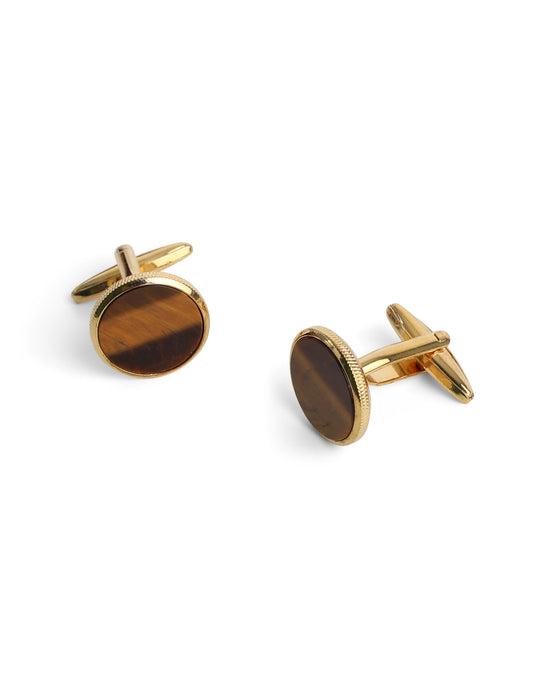 Round Gold with Tiger Eye Cufflink
