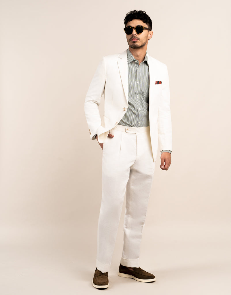Our most popular fit. A contemporary cut that is slightly wider across the Jacket chest and abdomen and wider in the Trouser leg than the Narrow fit. It creates a flattering silhouette on men of all shapes and sizes.