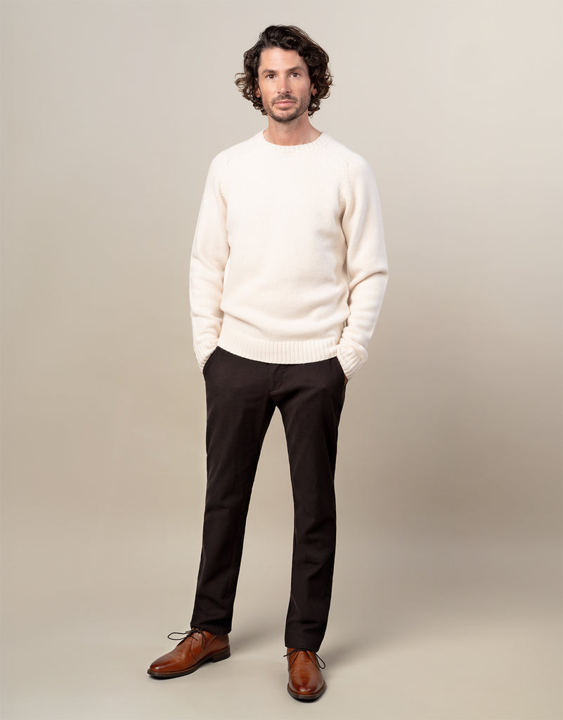 Our fullest fit across the Jacket chest and abdomen and in the Trouser thigh and leg. Neither too slim nor too classic, regular fits perfectly in between.