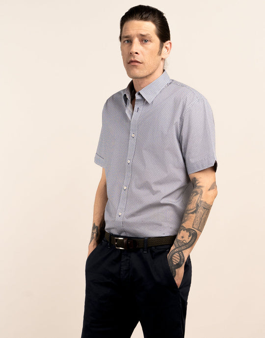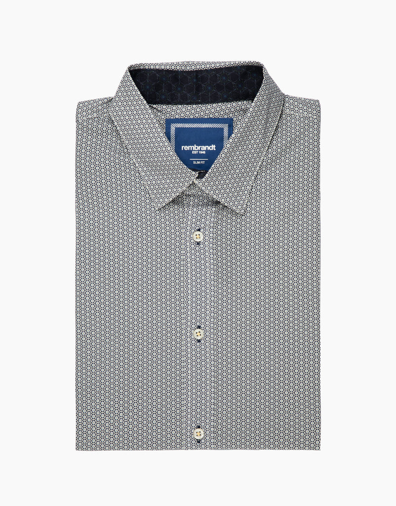Waihi Floral Hex Micro-design Print Short Sleeve Shirt