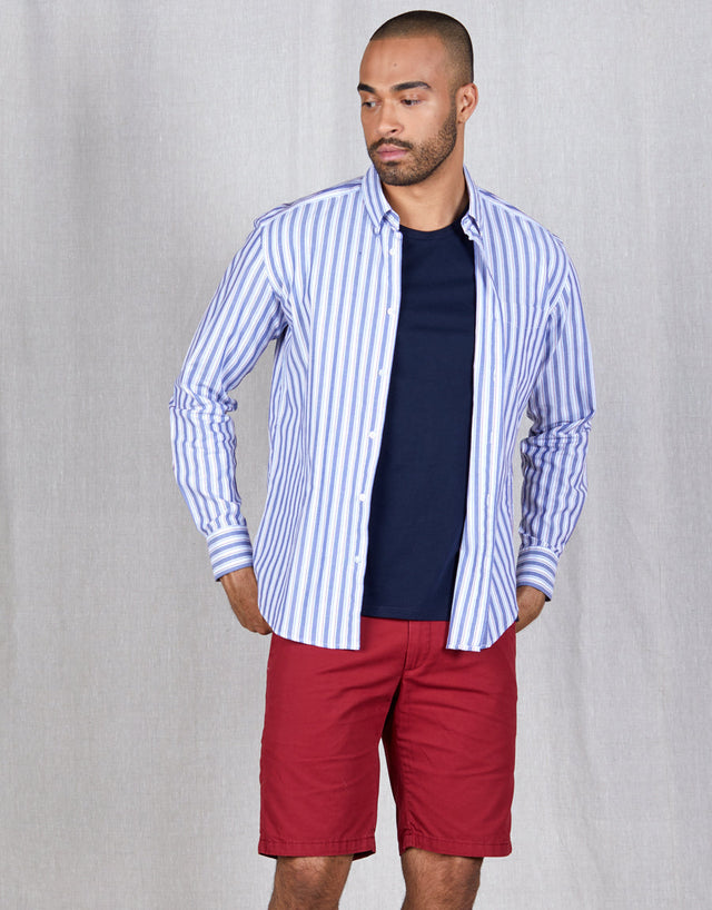 The Washed Ohope Blue & Red Stripe Shirt is all about comfort, style, and versatility. Add it to your wardrobe and easily elevate your everyday look!